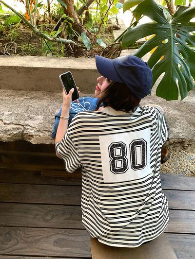 Koszulka polo damska w paski z opadającymi ramionami, luźna, swobodna, z nadrukiem, oversize