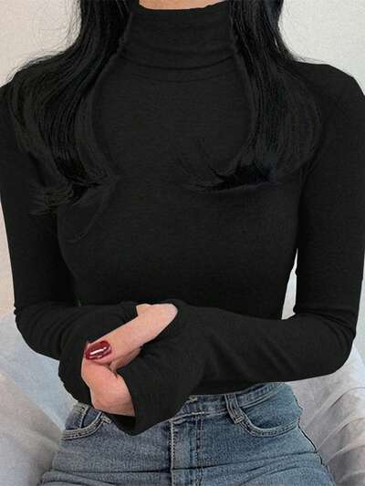 Wysoka damska koszulka z wysokim kołnierzem, dopasowana, z długim rękawem, na co dzień i elegancka-32%
