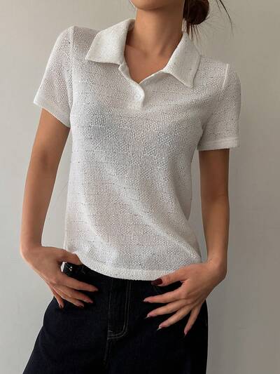 Damska koszulka letnia z krótkim rękawem, zapinana na zamek, w jednolitym kolorze, z regularnym krojem i krótkim rękawem, wygodna i oddychająca