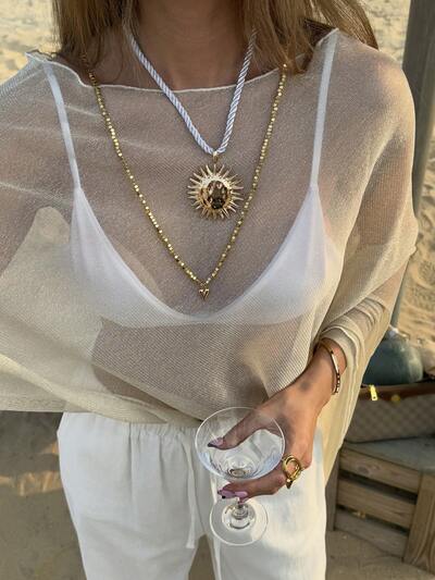 Letnia, nowa, w stylu vintage, damska koszula z blokami kolorów, przezroczysta, z długim rękawem