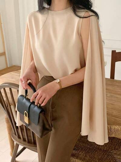 Koszula damska plisowana, luźna, casualowa, beżowa, z długim rękawem, na wakacje-44%