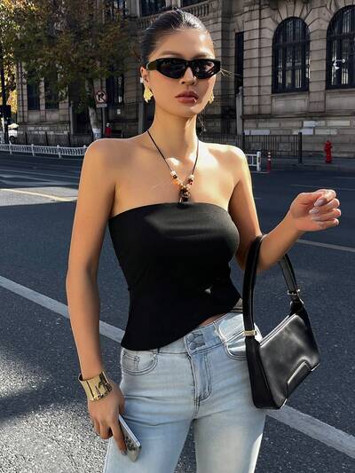 Damski, jednokolorowy, dopasowany top na wakacje z koralikami i halterem, wiosenno-jesienny top bez rękawów-44%