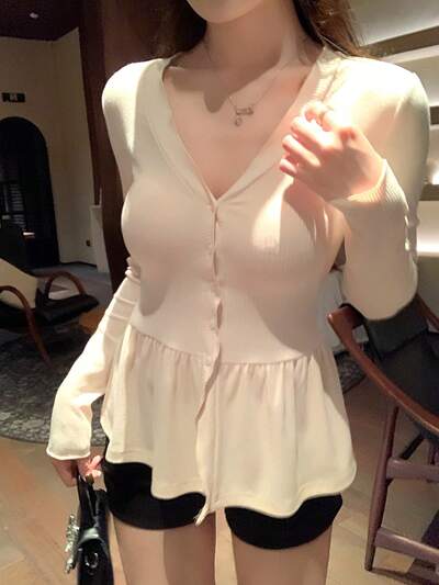 Bluzka z długim rękawem i okrągłym dekoltem w jednolitym kolorze, asymetryczna, z falbanką, dla kobiet, jesienne ubrania-32%