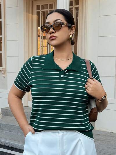 Dazy Plus Jednokolorowy, dopasowany, dzianinowy top polo z krótkim rękawem i kołnierzykiem, wiosna/lato/jesień