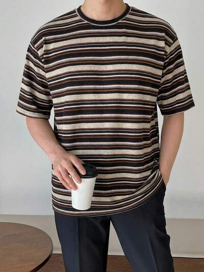 Koszulka męska w paski z krótkim rękawem, kolorowa, letnia-35%