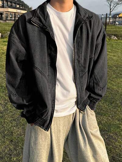 Męska kurtka dżinsowa w jednolitym kolorze niebieskim, jesień