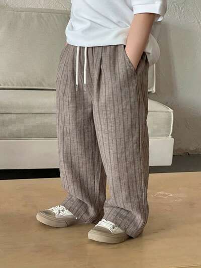Spodnie chłopięce w paski, z kieszeniami ukośnymi i ściągaczem w pasie-44%