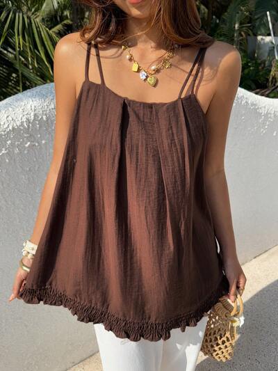 Damski luźny top z plisowaną ramiączką w jednolitym kolorze, styl wakacyjny, lato