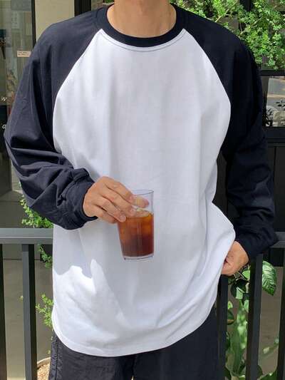 Męska koszulka z długim rękawem w jesiennym patchworku, z blokami kolorów, męska koszula na co dzień, jesienna
