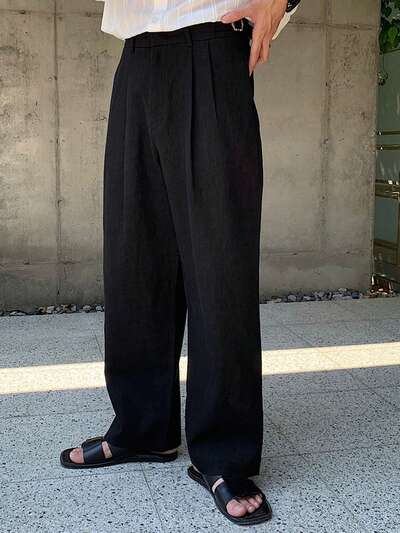 Calça Preta Sólida de Commuter com Cintura Ajustável, Primavera/Verão-42%