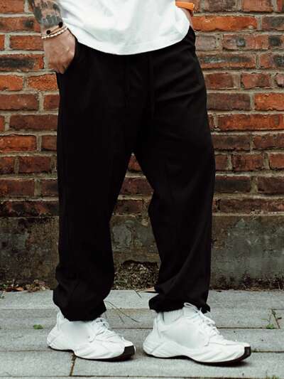 Calça Casual Masculina Sólida Preta, Primavera/Verão-35%
