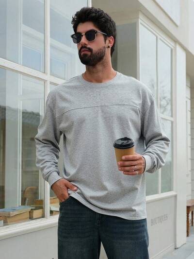 Camiseta Masculina Gráfica com Decote Redondo e Estampa de Letra, Camisa Masculina de Manga Longa Outono 2 em 1 Moderna-63%