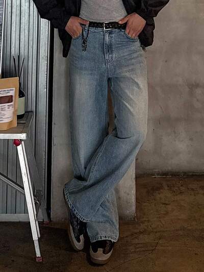 Denim casuais soltos com bolso, design simples-42%