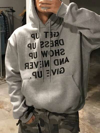 Moletom com Capuz Cinza com Cordão e Estampa de Letra para Homens, Outono-38%