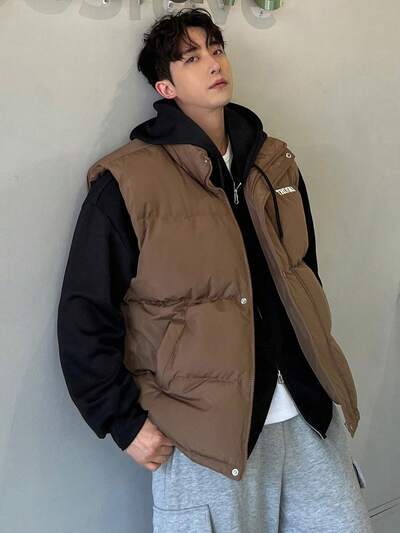 Colete Acolchoado Masculino com Estampa de Letra, Jaqueta de Inverno-60%