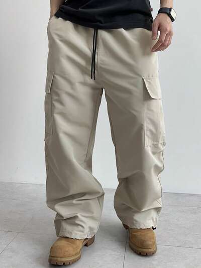 Calça Cargo Casual de Cor Sólida para Homens, Modelo Jogger-37%