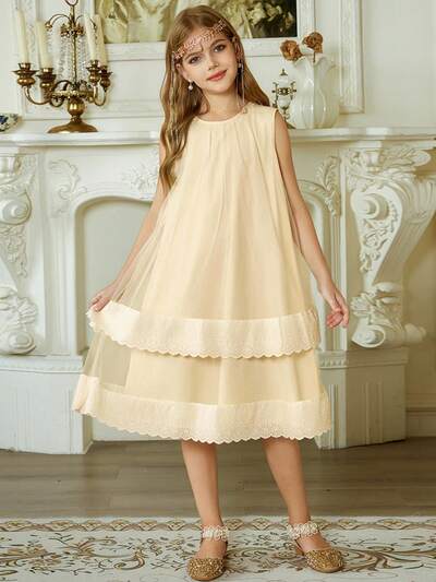 Vestido Regata com Gola Redonda e Tela para Meninas Pré-Adolescentes-40%