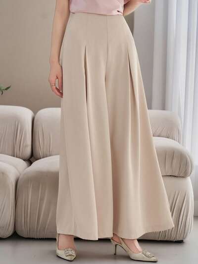 Calça Casual Solta Reta Plissada de Cor Sólida para Mulheres-55%