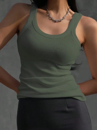 Regata Feminina Ajustada com Gola Quadrada e Canelada, Cropped de Verão para Mulheres-49%